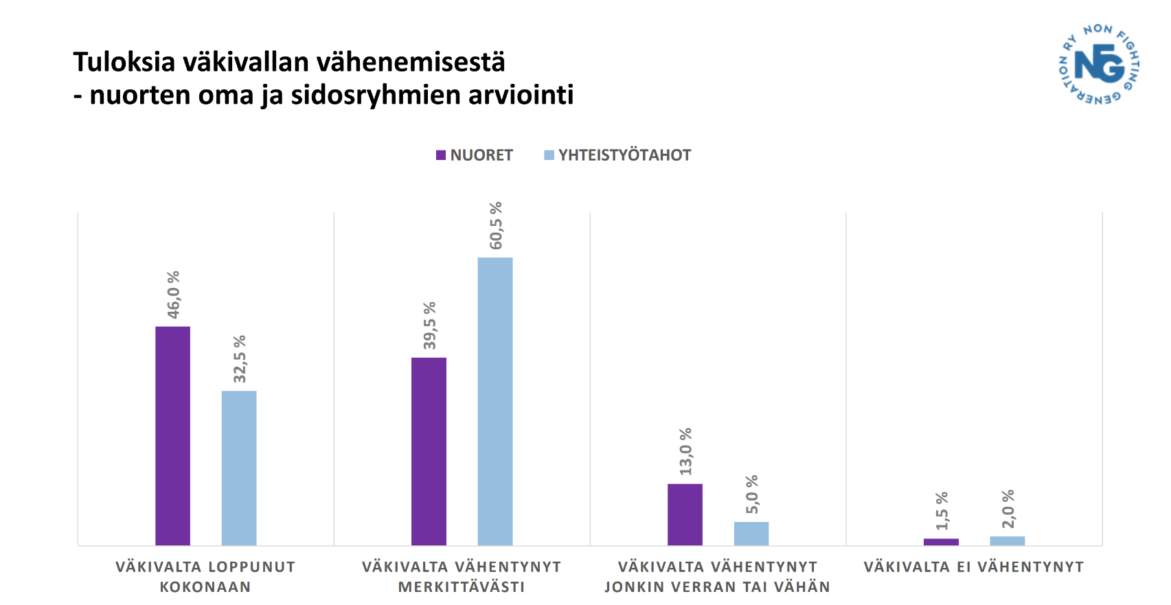 46 % nuorista kertoo, että väkivalta on loppunut kokonaan ohjauksen myötä.